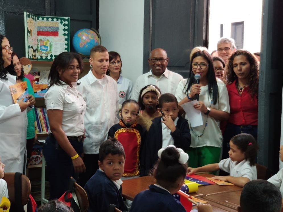 “Se incrementó la matrícula escolar en un 7,26 %. Hoy tenemos en nuestras aulas de clases a 8 millones 244 mil 53 niños y niñas desde educación Inicial hasta la Básica, buena noticia para nuestra patria. Venezuela seguirá su curso en paz, en tranquilidad, en educación”, indicó Rodríguez durante el acto central de inicio de clases, en compañía del ministro para la Educación, Aristóbulo Istúriz, entre otras autoridades, así como de los estudiantes de dicho plantel, personal docente y administrativo.