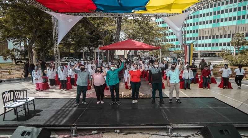 La Plaza Bolívar de Maracaibo fue el escenario para que 120 jóvenes, estudiantes de los últimos años de medicina y enfermería, se juramentaran como integrantes de la Brigada de Voluntarios Maracaibo 1, para incorporarse a la lucha contra la covid-19 en el municipio.