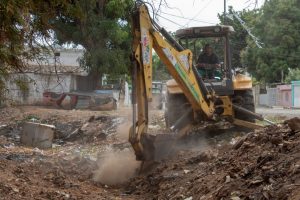Además de la desobstrucción asistida con retroexcavadora, la cuadrilla de 20 hombres y mujeres, también realiza labores de poda de árboles, desmalezamiento y barrido manual.