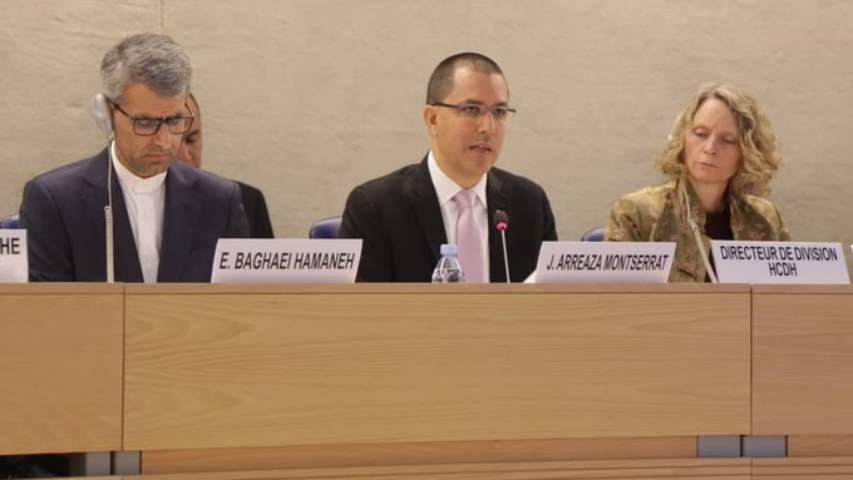 El canciller, Jorge Arreaza, reiteró la denuncia del gobierno nacional contra las «medidas coercitivas» impuestas por el gobierno estadounidense contra el país, durante su intervención en el Panel de Discusión Bienal sobre Medidas Coercitivas Unilaterales y Derechos Humanos de la Organización de las Naciones Unidas (ONU), en Ginebra, Suiza.