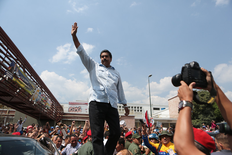Nicolás Maduro, candidato presidencial del oficialismo venezolano, se encuentra en su centro de votación Miguel Antonio Acara, de la parroquía Sucre, de la ciudad de Caracas, de la mano de su concubina Cilia Flores, para ejercer su derecho al voto en la mesa 7.