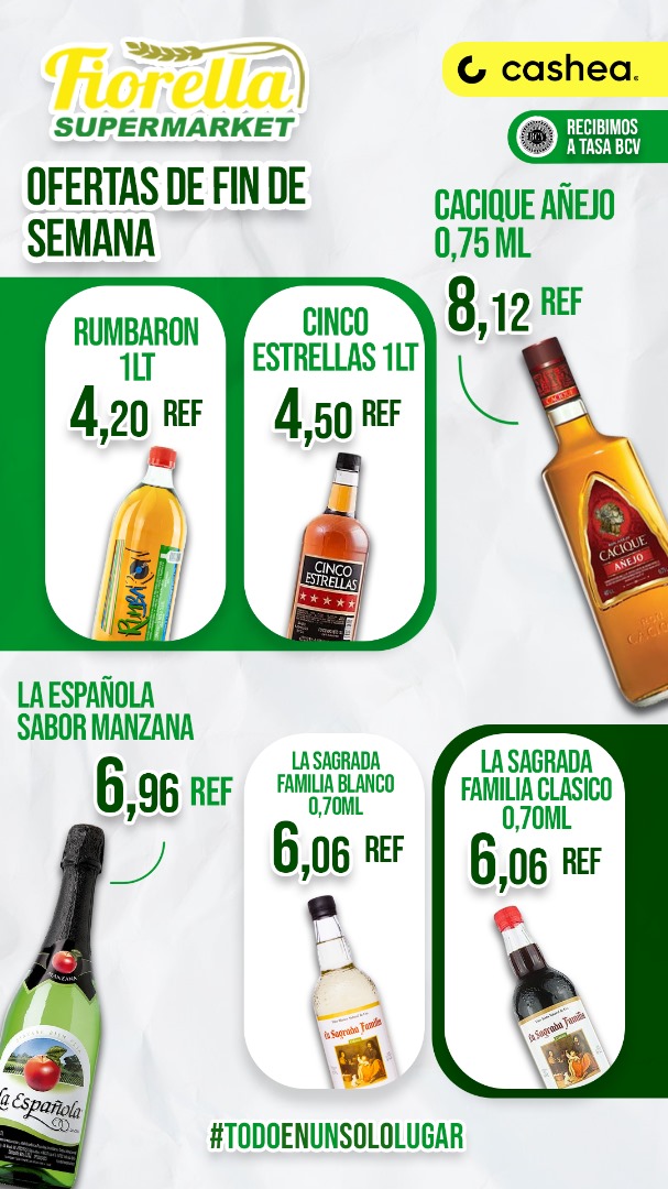 Fiorella Supermarket recuerda a su distinguida clientela que reciben Cashea y permiten pagos a la tasa BCV, reafirmando su compromiso con la flexibilidad de pago y el bienestar económico de las familias zulianas. Las ofertas estarán disponibles hasta agotar existencia.