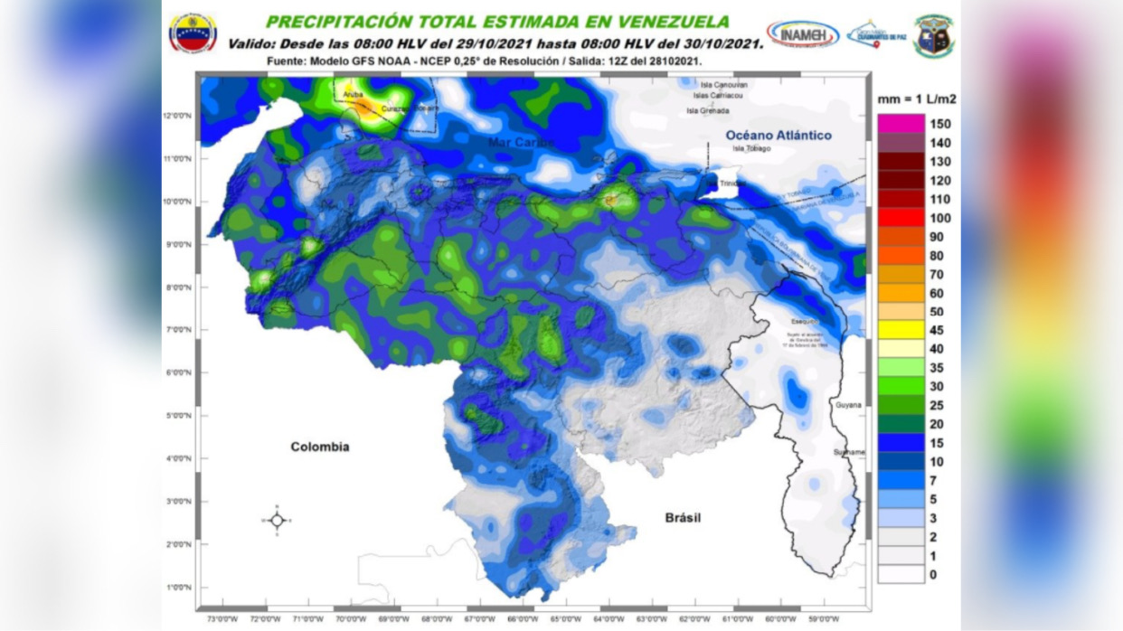 El Instituto Nacional de Meteorología e Hidrológica (Inameh) prevé precipitaciones en gran parte del país para este viernes y fin de semana.