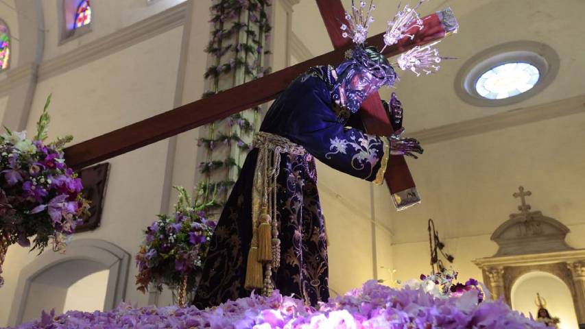 Tras dos años de suspensión por la pandemia, este miércoles los devotos participan en la procesión del Nazareno, una figura de Jesucristo que carga la cruz sobre su hombro, por la ciudad capital.