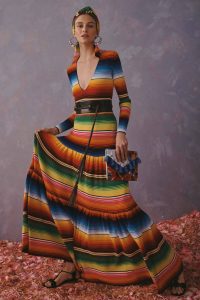 Lo mismo sucede con otras prendas que hacen referencia a la región del istmo de Tehuantepec, en Oaxaca, y un par de vestidos con Sarape de Saltillo, típico de Coahuila.