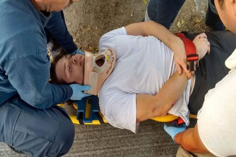 «Tengo un esguince en la mano derecha y la columna un poco lastimada, pero estoy bien gracias a Dios. En un mes, dos meses estoy como nuevo», afirmó.