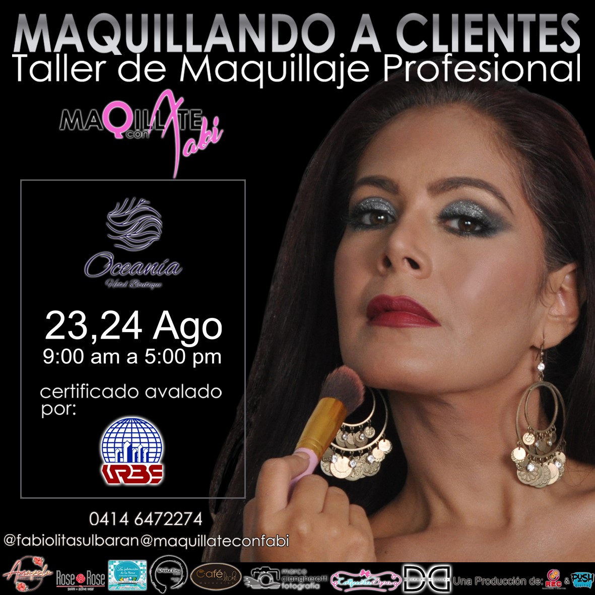 La periodista, productora audiovisual y Makeup Artist Fabiola Sulbarán estará dictando su primera edición de formaciones académicas de maquillaje profesional titulado Maquillando Cliente con la certificación y aval de la prestigiosa universidad privada Dr. Rafael Belloso Chacin (URBE) en el Hotel Oceanía en dos fechas: viernes 23 y sábado 24 de agosto.