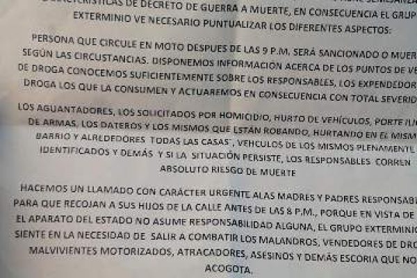 ALARMANTE: Lanzan panfletos de la muerte con el título de «Grupo Exterminio» al norte de Maracaibo En Portada, Sucesos