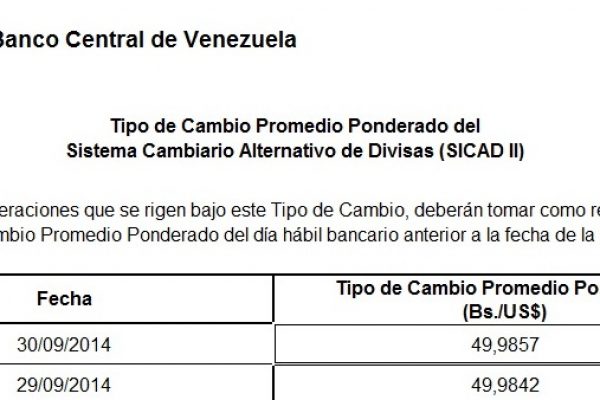 A 49,98 bolívares por dólar cerró Sicad III el mes de Septiembre