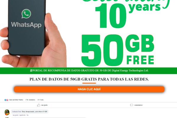 Engaño ofrece 50GB de Internet gratis por supuesto aniversario de WhatsApp