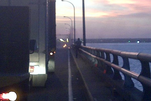 IMPACIENTE: Mujer cruzó a pié el puente sobre el lago de Maracaibo, se cansó de esperar una cola! Ciudad