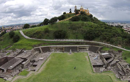 La apariencia de la gran pirámide es la de un cerro en cuya cima se encuentra una iglesia católica. Actualmente, la pirámide más grande del mundo se ha convertido en un destino turístico.