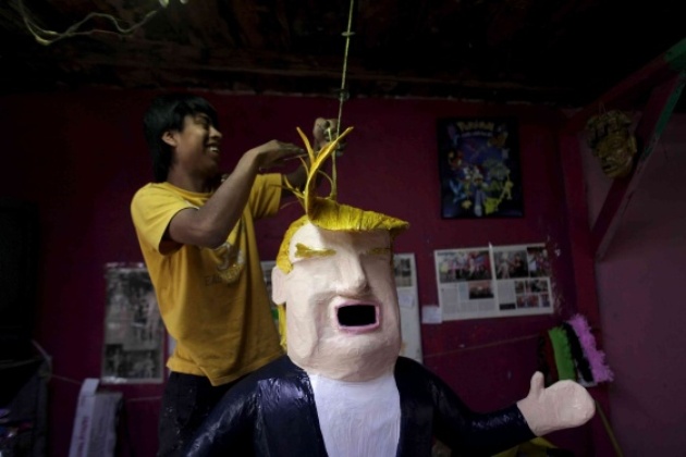 El artesano mexicano Dalton Avalos Ramírez, el miércoles presentó públicamente una piñata que representa a Trump con su peculiar peinado dorado y boca grande.