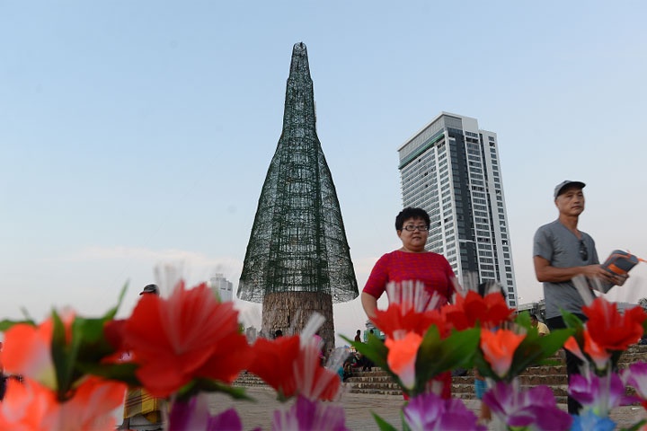 El abeto artificial fue levantado por iniciativa del campeón de cricket Arjuna Ranatunga en la capital, Colombo. El sábado por la mañana, según el coordinador del proyecto, Mangala Gunasekera, dos metros más que el construido el año pasado en la provincia china de Guangzhu (sur).