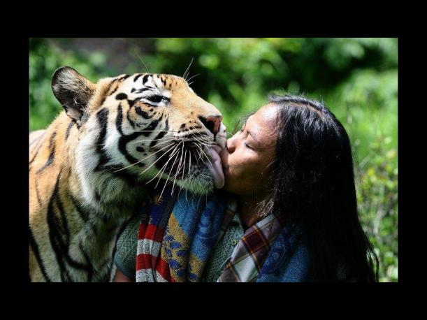 Diferentes animales de gran tamaño, principalmente los de las especies de primates, felinos y mamíferos, son los mayormente vistos expresando su afecto por aquello seres humanos con los que conviven.