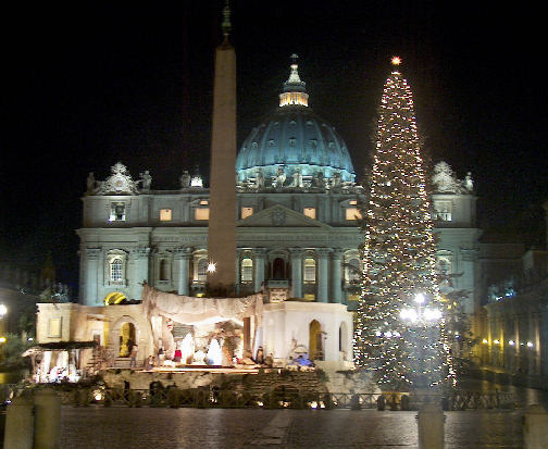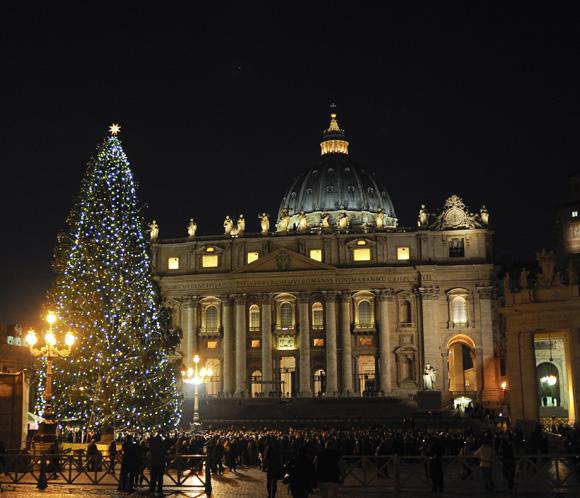 El Vaticano inauguró hoy el árbol de Navidad y el belén de la Plaza de San Pedro y presentó la nueva iluminación de la fachada y la cúpula de la basílica, con bombillas LED de bajo consumo.