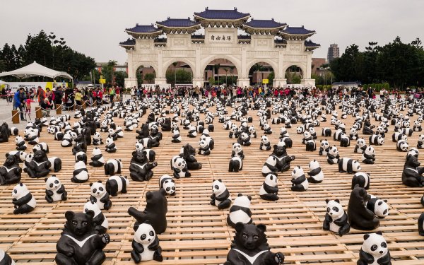 El artista francés, Paulo Grangeon, realizó una muestra de 1.600 osos panda de papel. Los pandas tienen diferentes formas y tamaños, y están realizados con seis tipos diferentes de papel.