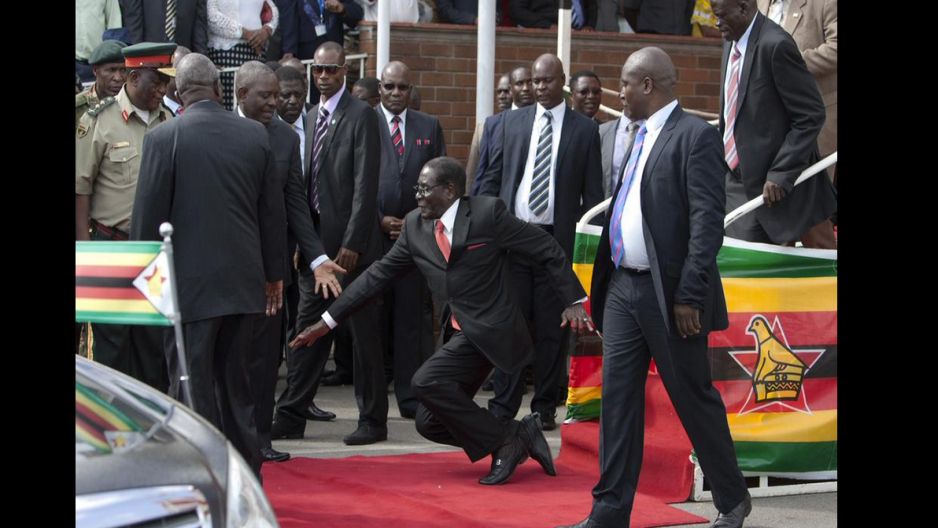 Robert Mugabe, presidente de Zimbabwe, se cayó mientras estaba caminando por las escaleras desde un podio elevado. Aunque sus guardaespaldas quisieron borrar todas las evidencias, estas fueron difundidas y le hicieron memes.