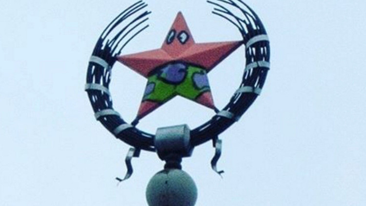 Patricio Estrella, uno de los personajes de la serie animada estadounidense ‘Bob Esponja’, ha ‘aparecido’ en lo alto de una torre de Vorónezh (Rusia Central), después de que alguien haya pintado la estrella soviética que corona ese edificio desde hace décadas, informa la agencia RIA Novosti.