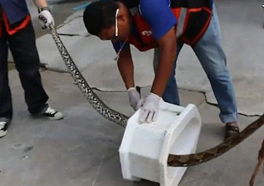 Trabajadores de emergencias desmantelaron el inodoro de estilo asiático, con el pitón aún enroscado a lo largo del mismo. La serpiente fue retirada e iban a ponerla en libertad nuevamente, según un trabajador de emergencias citado por el periódico Thai Rath.