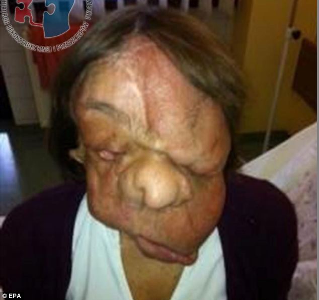 Una mujer polaca, cuyo rostro fue desfigurado por un enorme tumor, se sometió a una compleja cirugía de trasplante de cara en 2013. Sufría una neurofibromatosis, una condición genética que causa tumores benignos, que la había dejado totalmente incapacitada para masticar, hablar o tragar.