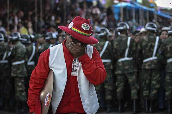 La televisión local ATB mostró una imagen de los miembros de la banda Poopó, de la que eran tres de los fallecidos, caminando al ritmo de la marcha fúnebre hacia el santuario de la Virgen del Socavón, la patrona de los mineros, donde acaba la entrada folclórica, y a donde muchos de los bailarines llegan tradicionalmente de rodillas.
