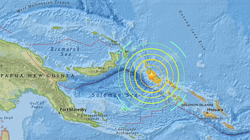 El Centro de Alertas por Tsunami del Pacífico levantó la alerta por riesgo de ola gigante en Papúa Nueva Guinea e Islas Salomón, luego del terremoto de magnitud 7,9 que sacudió este domingo la isla papuana de Bouganville.
