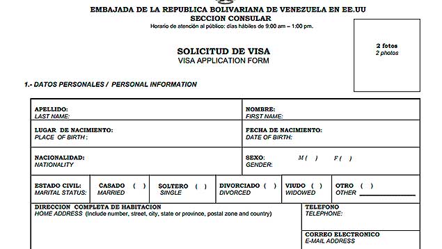 La Embajada de Venezuela en los Estados Unidos publicó los requisitos y el formulario para solicitar la Visa de Turista para quien desee ingresar al país con fines de recreo, salud o actividades, que no envuelvan remuneración o lucro, tales como: culturales, artísticas, científicas, deportivas, de contacto con empresas radicadas en el país o con personas del sector público privado, o periodísticos para eventos especiales.