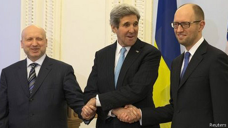 Luego se reunió con el presidente interino Alexander Turchínov, el primer ministro Arseniy Yatsenyuk y otras figuras del gobierno interino.