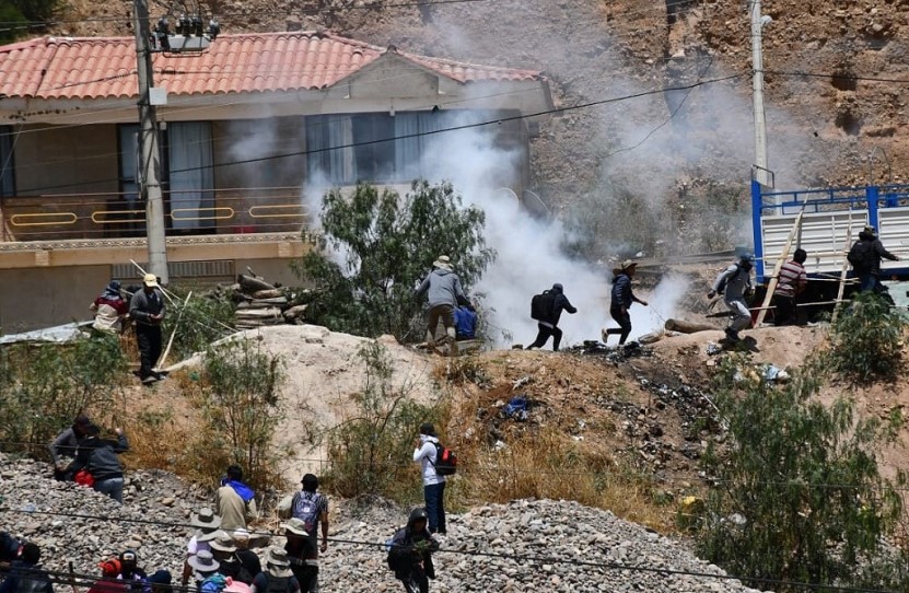 Los civiles usaron piedras, petardos e hicieron fogatas y la policía respondió con gases lacrimógenos, según imágenes de la televisora Unitel.