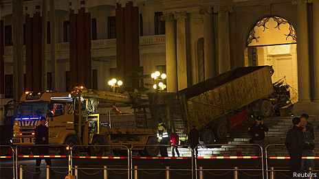 Informes indican que el camión aceleró y se desvió de la vía principal para chocar contra el palacio.