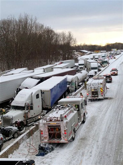 Las imágenes del lugar mostraron camiones con remolque y vehículos de pasajeros aplastados unos con otros a lo ancho de toda la carretera cerca de un paso elevado. Los autos de algunos pasajeros quedaron atrapados en el accidente. La carretera I-94 es la vía principal que se dirige al este desde Chicago a Michigan e Indiana, y el choque en cadena se registró cerca de Michigan City, aproximadamente a 96,5 kilómetros (60 millas) de Chicago.