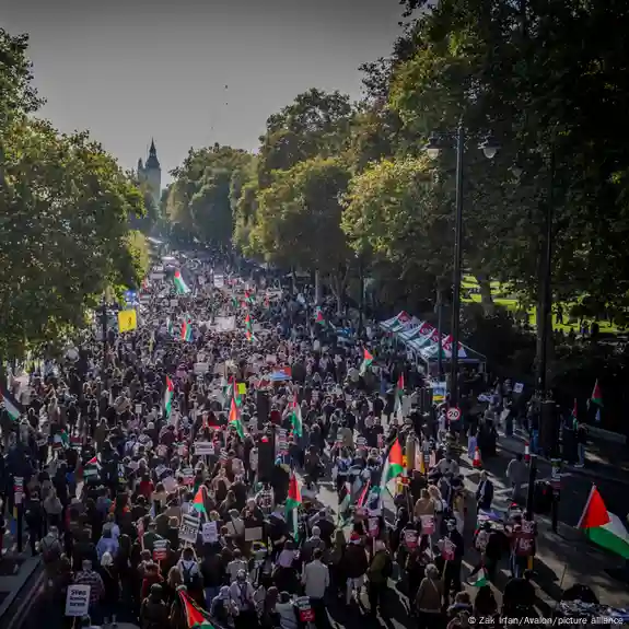 Cientos de miles de personas se congregaron este sábado (11.10.2025) en una marcha a favor de los palestinos en Londres con motivo del segundo aniversario del inicio de la guerra en Gaza y un día después de la entrada en vigor del acuerdo de alto el fuego entre Israel y Hamás.