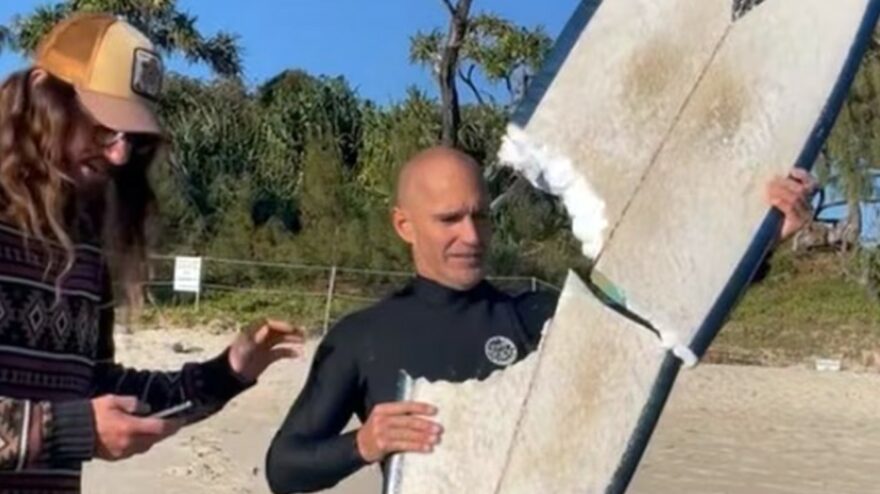 El incidente ocurrió en la mañana en la playa de Cabarita, ubicada a unos 35 kilómetros al norte de Byron Bay, en Nueva Gales del Sur. El surfista, cuya identidad no fue revelada, estaba en el agua cuando el tiburón atacó su tabla, dejando un gran trozo arrancado, afortunadamente no sufrió ninguna herida.