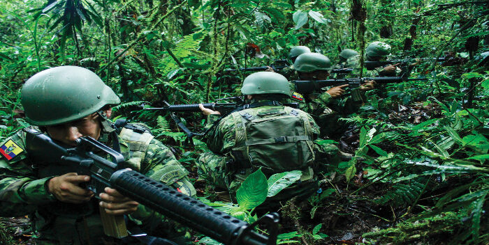 Las operaciones también cuentan con el respaldo aéreo de aeronaves que sobrevuelan el límite fronterizo, de acuerdo a lo consignado por los militares ecuatorianos.