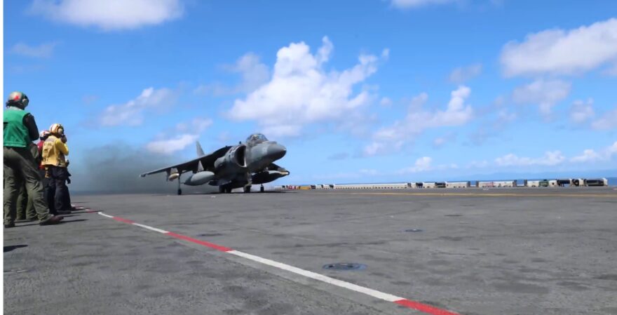 El Comando Sur de Estados Unidos llevó a cabo este fin de semana prácticas de fuego real en el mar Caribe, mostrando su capacidad de respuesta en operaciones conjuntas. En un video publicado en la cuenta oficial del Comando Sur en X, se pueden ver las imágenes de aviones de combate AV-8B Harrier II despegando de portaaviones, realizando maniobras en formación y disparando municiones de alto calibre sobre el agua, mientras se entrenan junto al Grupo de Preparación Anfibia del USS Iwo Jima, recoge Infobae.