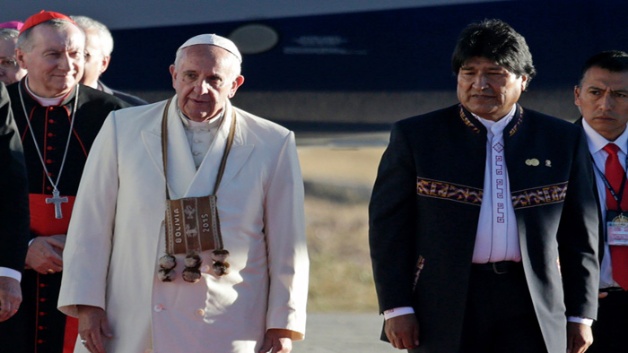 El papa Francisco ya está en Bolivia. El avión Boeing de la empresa Boliviana de Aviación BoA, que lo trasladó desde Ecuador aterrizó hacia las 17:11 horas locales (16:11 en Colombia).