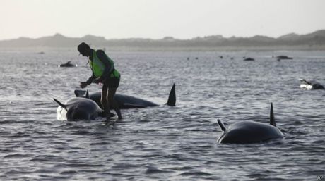 Rescatistas y voluntarios han acudido a la zona para salvar a las ballenas, luego que 24 de ellas murieran en el área de Farewell Spit.