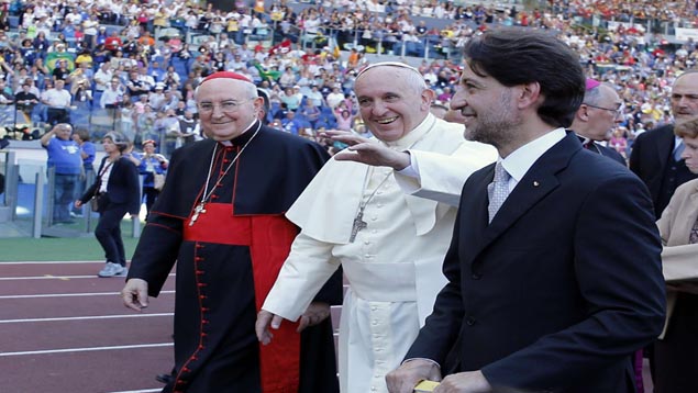 Jorge Bergoglio llegó al estadio a las 16.50 hora local y fue recibido con el himno «Osana en el cielo» por cerca de los asistentes, unas 52.000 personas según los organizadores. Durante el acto, que duró una hora, el papa argentino reconoció que inicialmente la RCC no contaba con su simpatía, aunque después de conocer su actividad se dio cuenta de que «amaban la Iglesia».