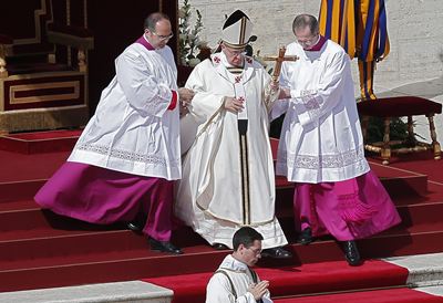 Cientos de miles de creyentes se dieron cita en Roma para estar presentes en la misa de entronización en la Plaza de San Pedro, en el Vaticano, que dió inicio a su pontificado, el cual definió como una tarea de servicio especialmente dirigido a los más pobres y débiles.
