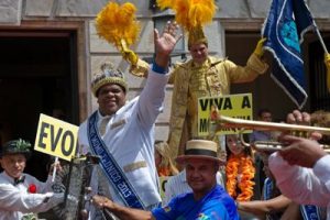 «¡Viva la monarquía! ¡Viva el rey!», gritaron algunos integrantes de su corte, entre ellos un puñado de viejos sambistas cariocas con sombrero y zapatos bicolores de charol, al verlo bajar de un auto antiguo en el que llegó al Palacio de la Ciudad de Rio.