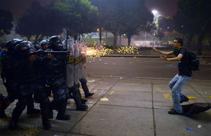 Siete personas murieron durante la jornada de protestas más violenta en Brasil a raíz de la organización del Mundial de Fútbol. Manifestantes y trabajadores aseguraban que sólo se trata de «un anticipo» de que lo que se vivirá una vez que comenzara el evento deportivo. Durante el certamen las manifestaciones pasaron casi desapercibidas.