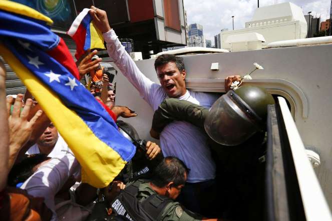 Durante las protestas en Venezuela, el líder opositor Leopoldo López se entrega al gobierno venezolano quien lo culpa de los delitos cometidos el 12 de febrero.