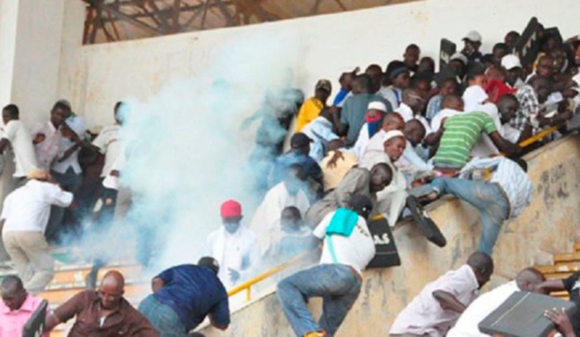 Los aficionados del Mbour trataron de escalar la pared para refugiarse de los gases lacrimógenos utilizados por la policía para dispersar a la multitud.