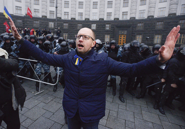 En Ucrania, líderes de las protestas populares que derrocaron al presidente Victor Yanukóvich presentaron ante la multitud en la Plaza de la Independencia, en Kiev, al hombre que se dispone a ser el nuevo primer ministro, Arseniy Yatsenyuk.