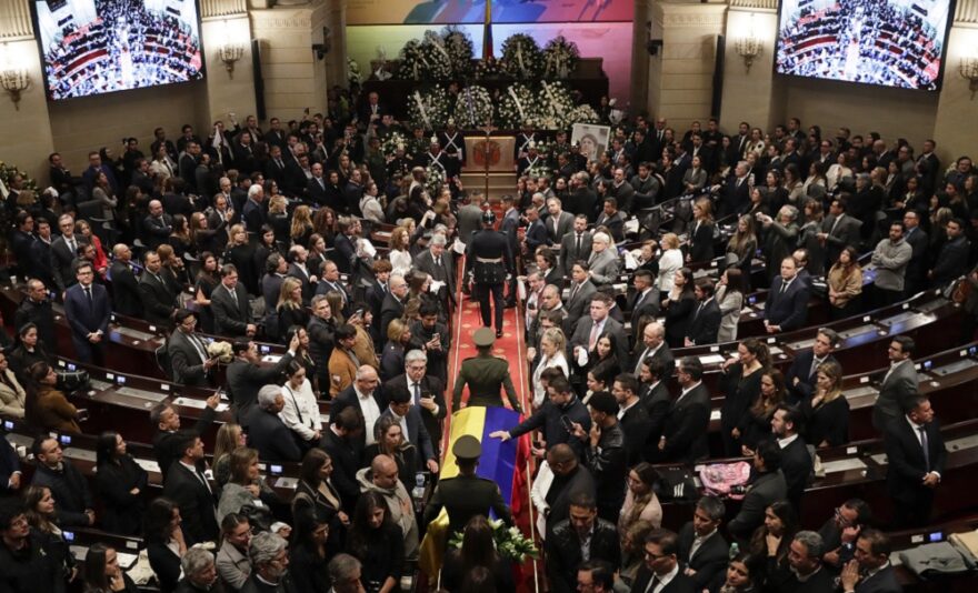 El féretro de Uribe Turbay es velado hasta este miércoles 13 en el Salón Elíptico del Capitolio Nacional, donde se da cita la clase política del país, y sus exequias serán en la Catedral Primada de Colombia.