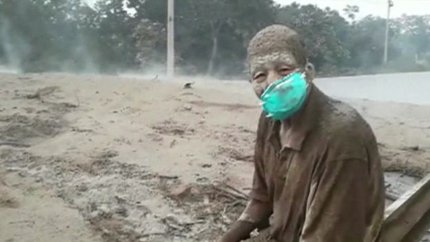 Siguen desaparecidos su hijo de 10 años y su pequeña de 4, que quedaron atrapados en la vivienda, inundada por el lodo caliente que descendió del volcán, de 3.763 metros de altura y que emitió columnas de ceniza de unos 6.000 metros de altura.