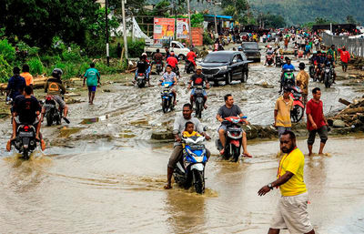 La mayoría de las víctimas mortales, 82, fallecieron a causa de riadas en la ciudad de Sentani y sus alrededores provocadas por las intensas lluvias que duraron siete horas en la noche del sábado y el resto, 7, fueron atrapadas por corrimientos de tierra en la capital provincial Jayapura.