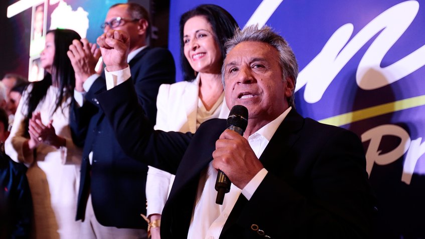 El candidato oficialista de izquierda a la Presidencia de Ecuador, Lenín Moreno, encabeza con 39,4 % de los votos las elecciones celebradas este domingo en Ecuador, según varias encuestas a boca de urna.