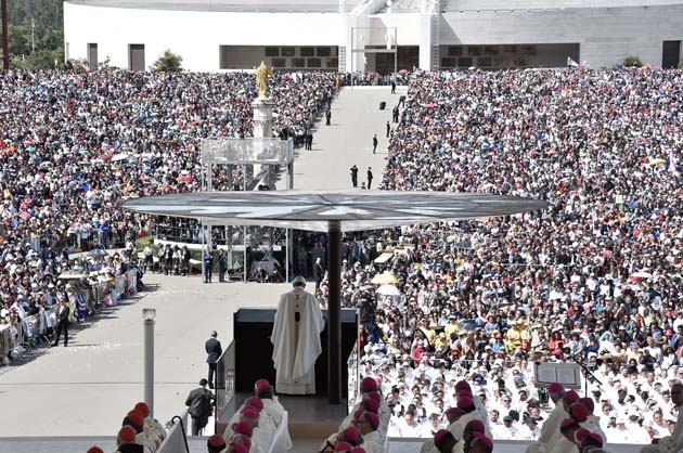 “Como un ejemplo para nosotros, tenemos ante los ojos a San Francisco Marto y a Santa Jacinta”, que con su fe en la Virgen recibieron “la fuerza para superar las contrariedades y los sufrimientos”, declaró el papa en la homilía.